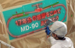 30日で17年間の運航に幕を閉じるJALのMD-90。7日に同社の整備士が羽田で特別塗装を行いました。