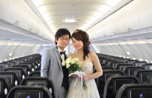 就航7周年記念で行われた空の結婚式(スターフライヤー提供)