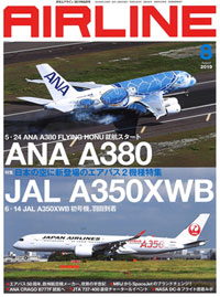 月刊エアライン(イカロス出版)2019年8月号が6月28日発売。1404円(税込)。