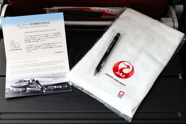シドニー空港では1日に就航50周年式典が開かれ、搭乗口には客室乗務員の歴代制服を着用したJALのスタッフ8人が登場し、セレモニーに華を添えた。成田行きJL772便(787-9、JA861J)は、乗客187人(幼児0人)を乗せ、定刻より6分早い現地時間午前8時9分にシドニーを出発。成田には5分早着の午後5時に到着した。乗客には搭乗証明書やJALロゴ入りタオル、ボールペンが手渡された。