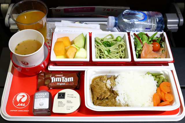 成田発シドニー行きJL771便エコノミークラスの機内食=19年9月29日 PHOTO: Masahiro SATO/Aviation Wire