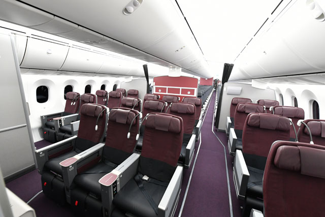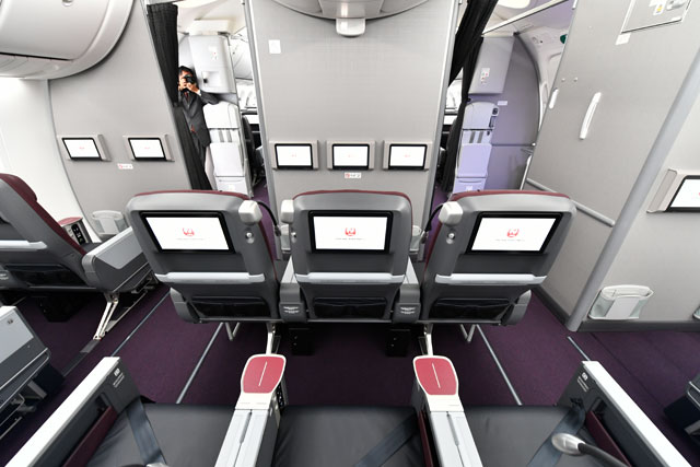 JALの787-8国内線仕様初号機のクラスJ前方エリア=19年10月16日 PHOTO: Tadayuki YOSHIKAWA/Aviation Wire