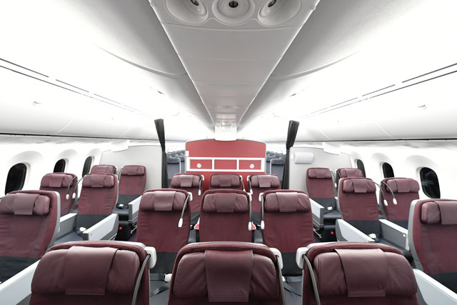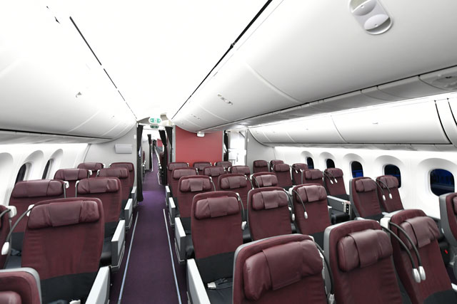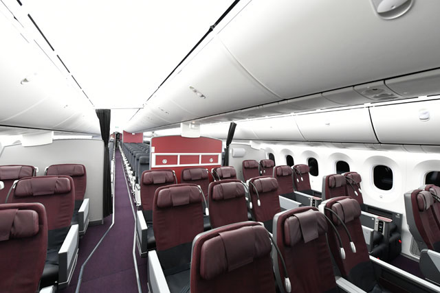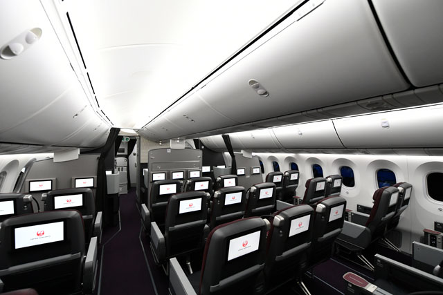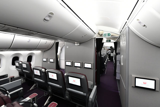 JALの787-8国内線仕様初号機のクラスJ後方エリア=19年10月16日 PHOTO: Tadayuki YOSHIKAWA/Aviation Wire