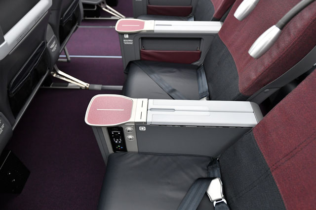 JALの787-8国内線仕様初号機のクラスJのアームレスト=19年10月16日 PHOTO: Tadayuki YOSHIKAWA/Aviation Wire