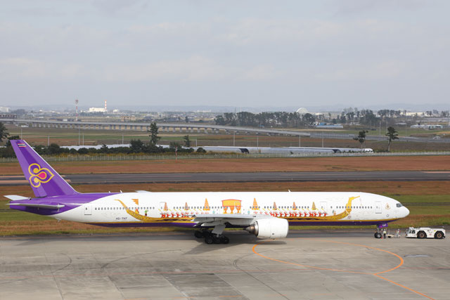 タイ国際航空、仙台便5年7カ月ぶり再開 初便は特別塗装機