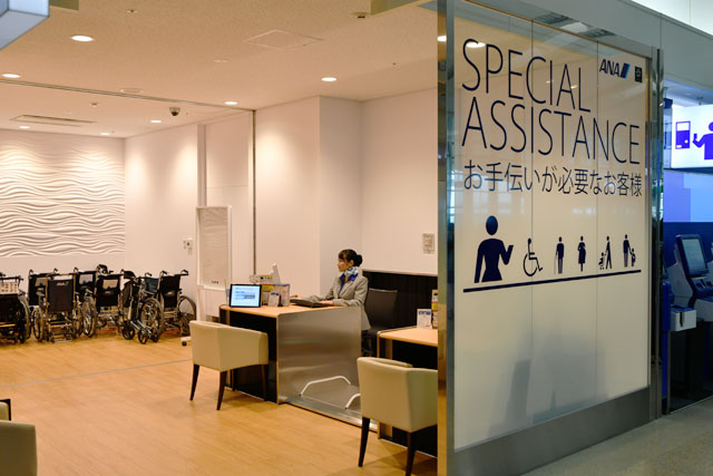 那覇空港に導入されたANAのスペシャルアシスタンスカウンター=19年11月5日 PHOTO: Tadayuki YOSHIKAWA/Aviation Wire
