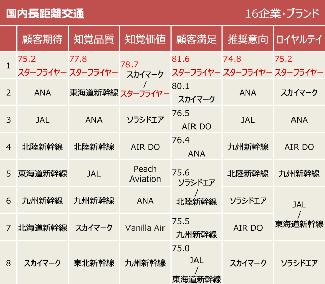 同調査は、非営利法人のシンクタンク・日本生産性本部サービス産業生産性協議会が実施。顧客満足度のほか、顧客期待(利用時の期待・予想)、知覚品質(利用した際の品質評価)、知覚価値(価格への納得感)、ロイヤルティ(継続的な利用意向)、推奨意向(他者への推奨)の6項目を設定し、各項目を7-10点満点の複数設問で調査する。すべてが満点の場合を100点、すべて1点の場合は0点として、業界や企業を多面的に評価する。