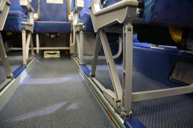 そして、もっとも変わったシートは、最前列の1A席ではないだろうか。離着陸時は客室乗務員がすぐ目の前に座り、乗降ドアがあまりにも近いため、雨の日にはしずくが落ちてきて足もとが濡れてしまいそうだ。