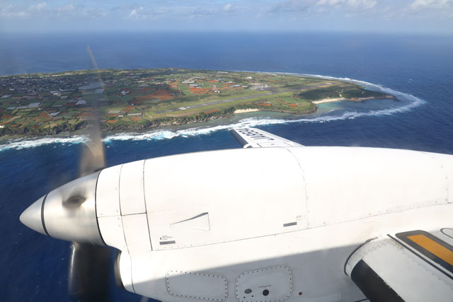 機内の窓から見たローパスを実施した沖永良部空港=19年12月1日 PHOTO: Masahiro SATO/Aviation Wire
