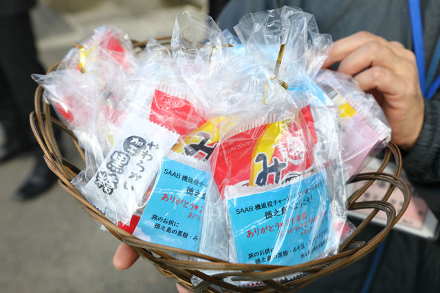 徳之島空港でツアー参加者に配られた記念品=19年12月1日 PHOTO: Masahiro SATO/Aviation Wire