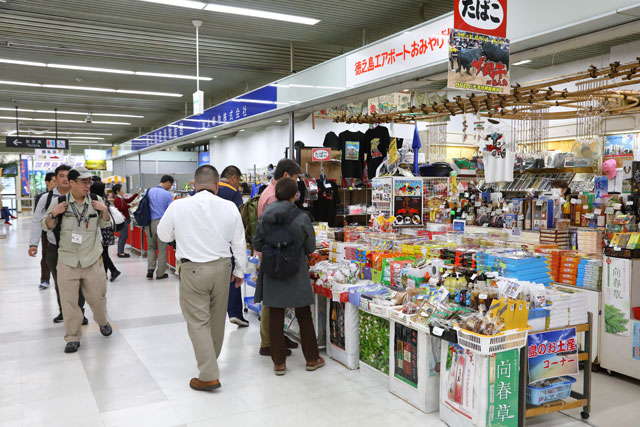 徳之島空港の売店などに立ち寄るサーブ340B退役チャーターツアー参加者=19年12月1日 PHOTO: Masahiro SATO/Aviation Wire