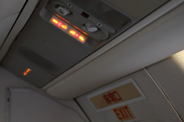 サーブ340Bのシートベルト着用サインと禁煙を示すサイン=19年12月1日 PHOTO: Masahiro SATO/Aviation Wire