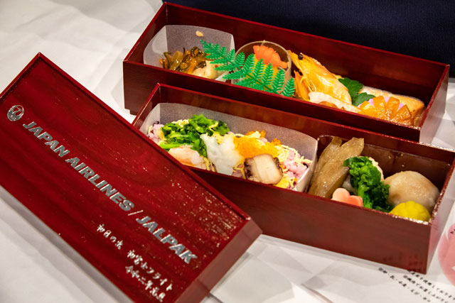 JALの初日の出フライトで提供された機内食=20年1月1日 PHOTO: Tatsuyuki TAYAMA/Aviation Wire