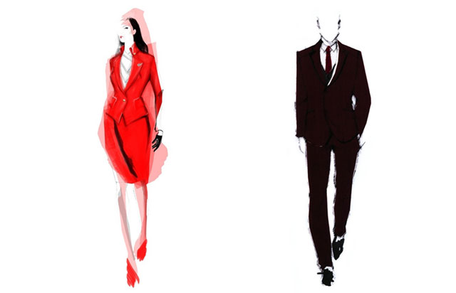 ヴィヴィアン・ウエストウッドによるヴァージン アトランティック航空の新制服のデザイン画(同社資料から)