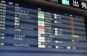 新型コロナウイルスがが全世界に影響した20年5月の国際線(写真は成田空港第1ターミナルの出発案内)=20年5月26日 PHOTO: Yusuke KOHASE/Aviation Wire