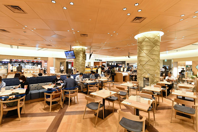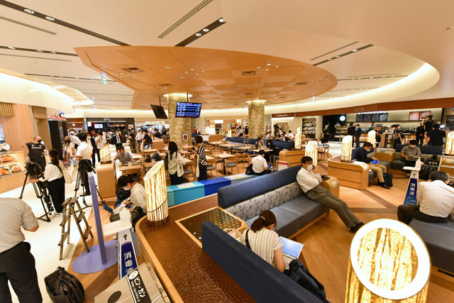 一般エリアでは、これまでテイクアウトのみだった豚まんの「551蓬莱(551HORAI)」がリニューアル前のように南ターミナルの店内で食事が可能になったほか、北ターミナルには上島珈琲店がオープンした。