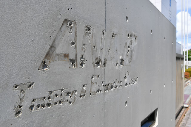 ANAトレーニング&エデュケーションセンター敷地内に置かれていた全日空伊豆山研修所の銘板跡=20年8月28日 PHOTO: Tadayuki YOSHIKAWA/Aviation Wire