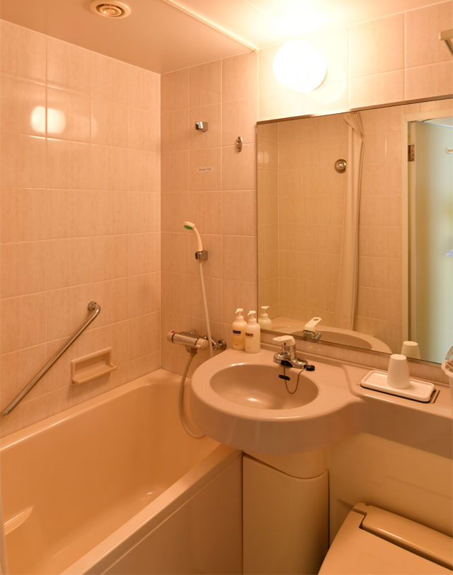 ANAトレーニング&エデュケーションセンター宿泊棟のシングルルームの浴室=20年8月28日 PHOTO: Tadayuki YOSHIKAWA/Aviation Wire