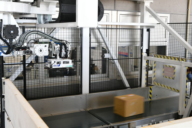 ANAでは、佐賀空港のスタッフと検討を進める中で、中が空洞のコンテナボックスを使い、自動積み込みの停止と再開を切り替えられるようにした。ロボットでタグの読み取り機能などを追加すると数千万円程度のコストが必要になるが、使用するロボットの仕様を活用して、現場の係員に負担がかからない形で実現した。