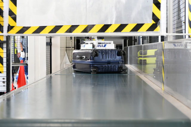 佐賀空港でANAが運用する自動手荷物積み込みロボットは段ボール箱は積まず通過する=20年10月5日 PHOTO: Tadayuki YOSHIKAWA/Aviation Wire