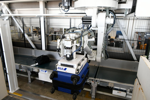 全日本空輸(ANA/NH)は、乗客が預けた手荷物をロボットが自動で「バルクカート」と呼ぶ荷車に積み込む様子を、佐賀空港で報道関係者に公開した。国内初の取り組みで、3月に実用化したもの。乗客が預ける荷物の約6割にあたるキャスター付きのキャリーバッグを、自動で積み込む。一方で、マイレージの上位会員の手荷物など、係員が積み込みたい場合は目印になる小型のコンテナボックスをチェックインカウンターからベルトコンベヤーに流すことで手動に切り替わり、自動化と係員による個別対応を低コストで両立させた。