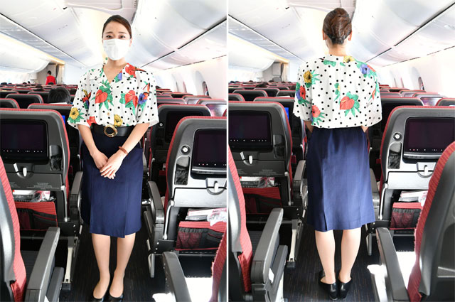 「ハワイ気分周遊フライト」JL1801便で3種類のリゾッチャ制服を着用したJALの客室乗務員(同社提供)
