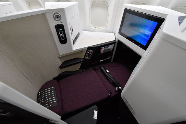 国内線転用後はクラスJとして運用するJALの777-200ERのビジネスクラスシート「スカイスイートIII」=PHOTO: Tadayuki YOSHIKAWA/Aviation Wire