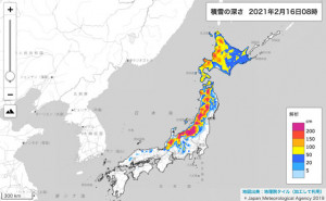 16日8時時点の積雪の深さ(気象庁のサイトから)