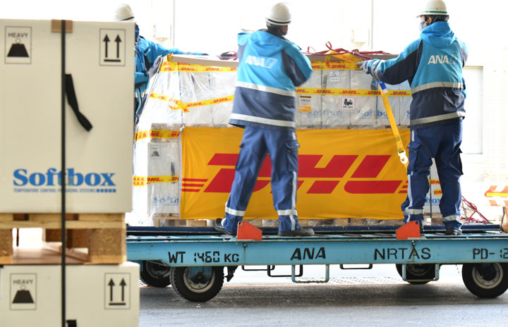 ANAのブリュッセル発NH9648便で成田空港へ到着し貨物上屋で荷ほどきされるファイザーの新型コロナウイルス用ワクチン=21年3月1日 PHOTO: Tadayuki YOSHIKAWA/Aviation Wire
