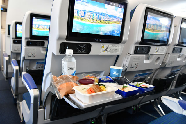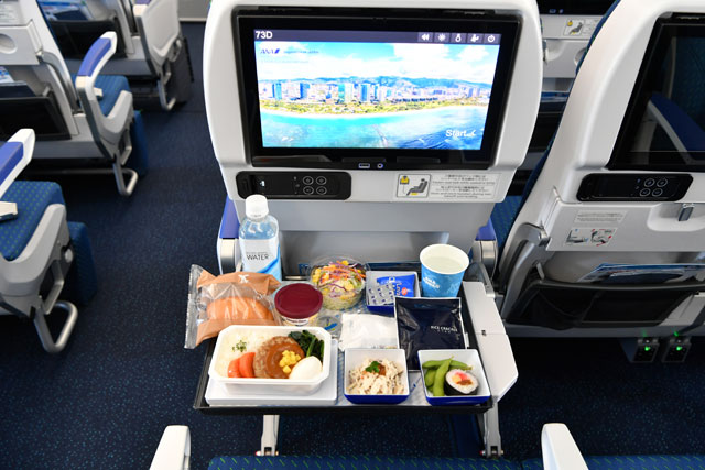 ANAのA380による「レストランFLYING HONU」のエコノミークラスで提供された機内食=21年6月26日 PHOTO: Tadayuki YOSHIKAWA/Aviation Wire
