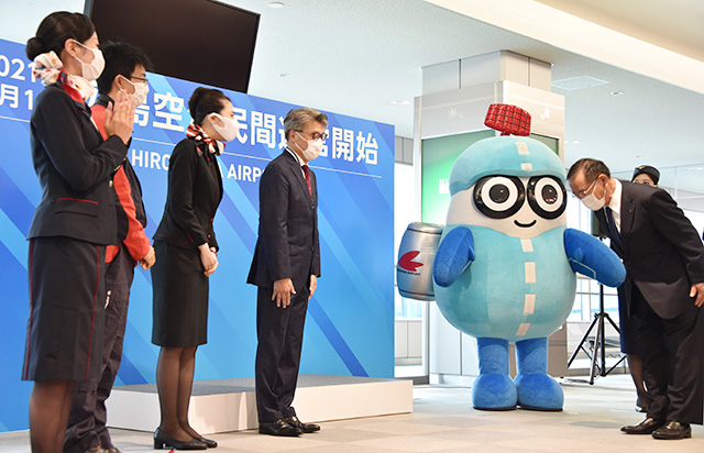 広島空港が民営化 新型コロナで3カ月遅れ、出発初便はJALディズニー塗装機