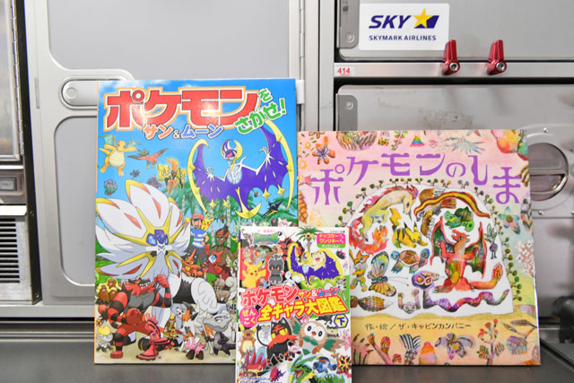 スカイマークのピカチュウジェットBC初便の安全のしおりや機内誌、エチケット袋=21年6月21日 PHOTO: Tadayuki YOSHIKAWA/Aviation Wire