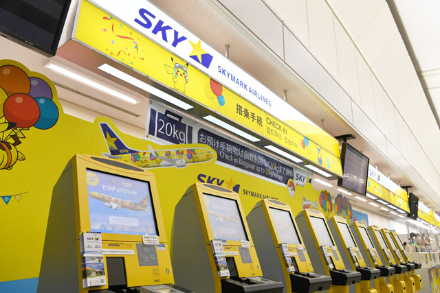 ピカチュウ仕様になった那覇空港のスカイマークカウンター=21年6月21日 PHOTO: Tadayuki YOSHIKAWA/Aviation Wire