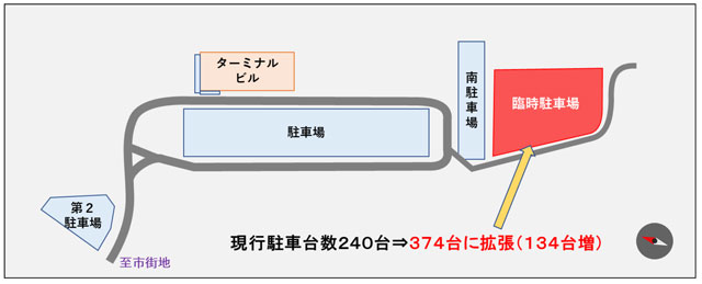 帯広空港には現在、ターミナルビル前の駐車場、第2駐車場、南駐車場、臨時駐車場の計4つの駐車場があり、このうち臨時駐車場を拡張する。