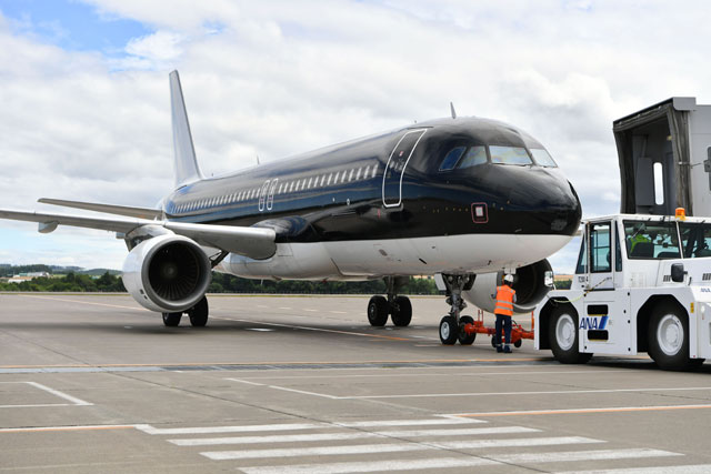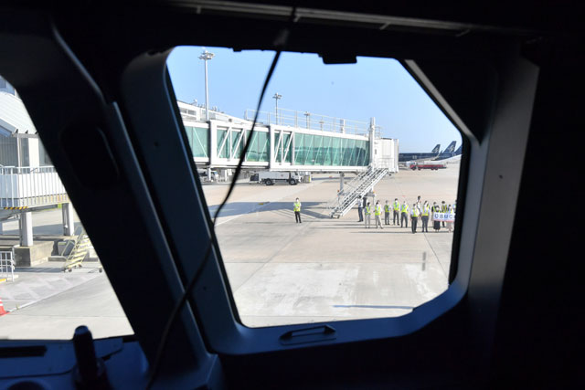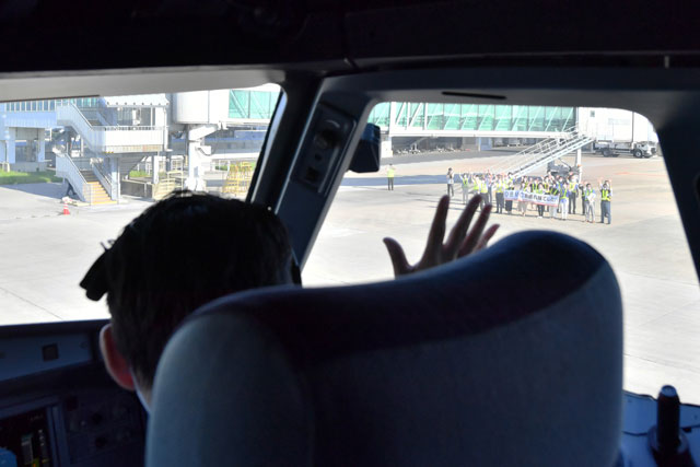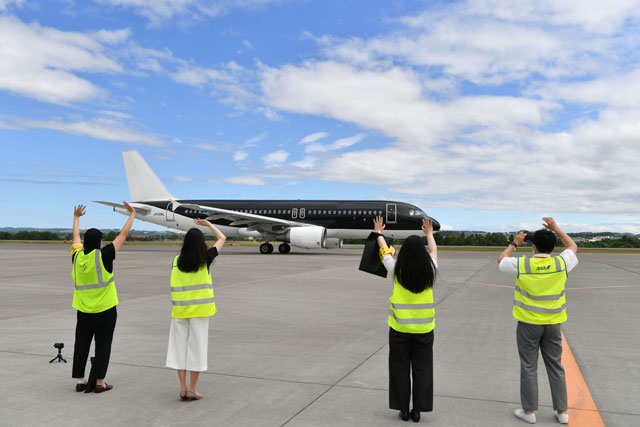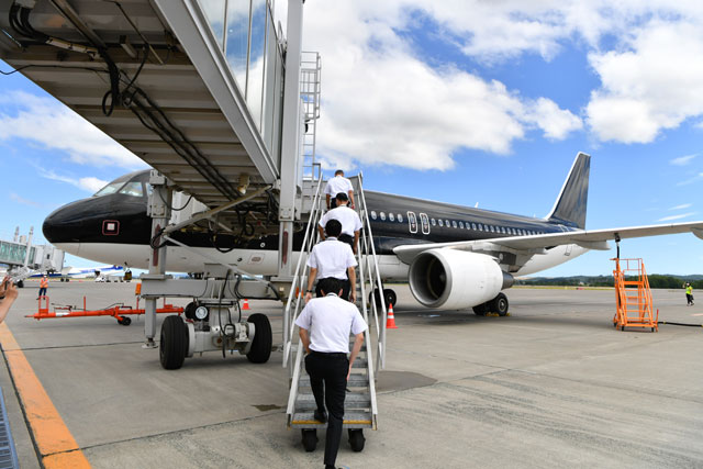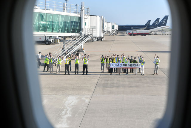 8号機は9年前の現地時間2012年12月10日に受領し、本社のある北九州空港には同月14日に到着した。2013年の就航を念頭に計画していた北九州-グアム線に投入するため、洋上を