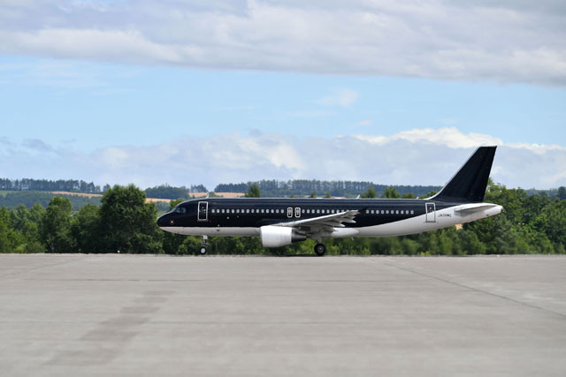 ロゴが消されたスターフライヤーのA320 8号機JA08MC=21年7月27日 PHOTO: Tadayuki YOSHIKAWA/Aviation Wire