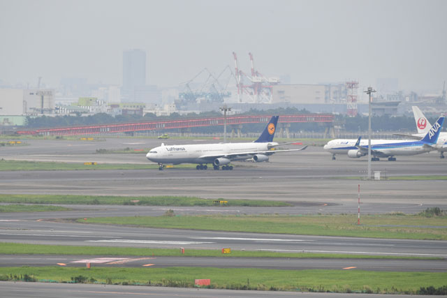 羽田空港の第3ターミナルへ向かうルフトハンザのフランクフルト発LH716便のA340-300=21年8月12日 PHOTO: Tadayuki YOSHIKAWA/Aviation Wire
