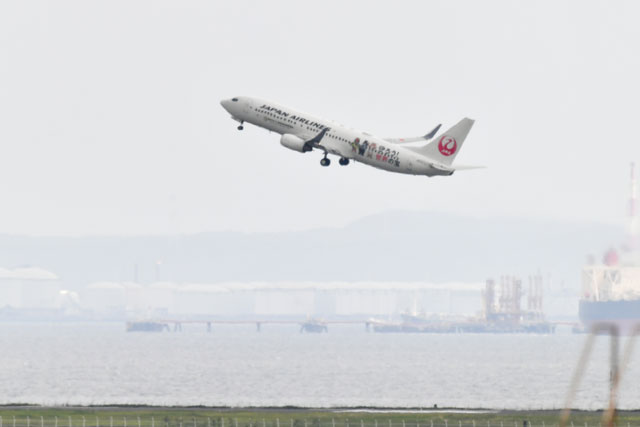 羽田空港を離陸し奄美大島へ向かう沖縄・奄美の世界自然遺産登録を記念したJALの特別塗装機初便のJL659便=21年9月7日 PHOTO: Tadayuki YOSHIKAWA/Aviation Wire