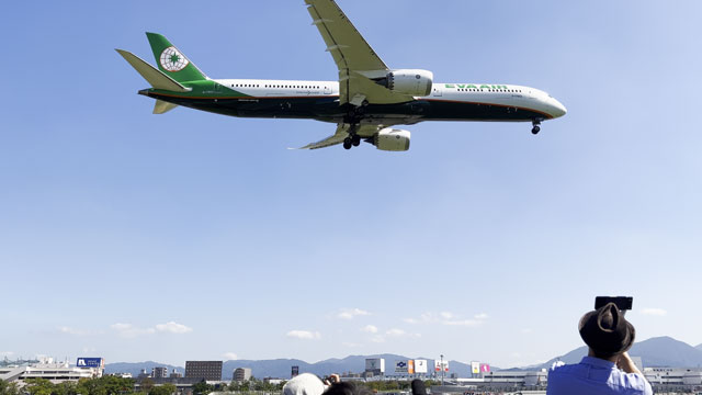 福岡空港に着陸するエバー航空の787-10=21年10月5日 PHOTO: Tadayuki YOSHIKAWA/Aviation Wire