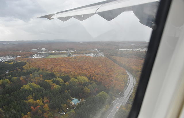 千歳基地の滑走路を離陸するHACのATR42-600で運航する遊覧飛行JL4367便=21年10月26日 PHOTO: Yusuke KOHASE/Aviation Wire