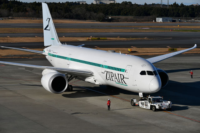 ZIPAIRは現在、成田-バンコク、ソウル、ホノルル、シンガポールの4路線を運航。機材稼働率を高めるため台北にも就航する計画で、今後は年2機ずつ増機して2024年度には10機体制を目指す。