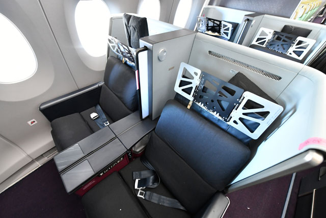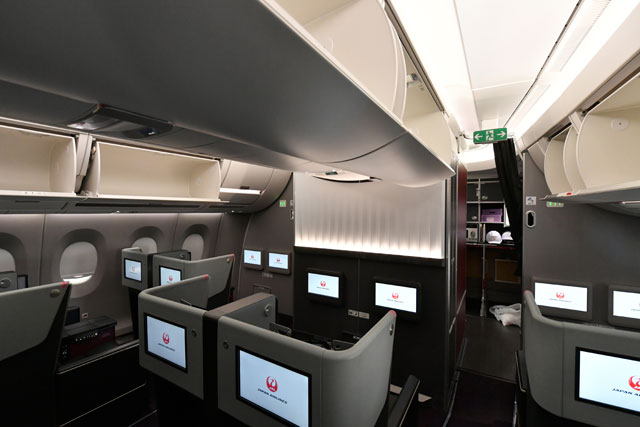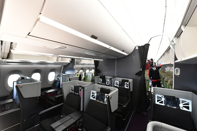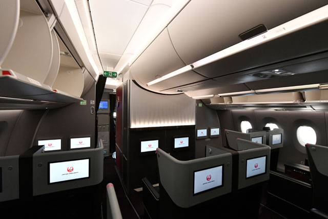 Cチェック中のJAL A350-900 JA05XJのファーストクラス=21年11月26日 PHOTO: Tadayuki YOSHIKAWA/Aviation Wire