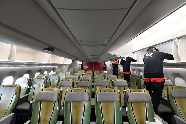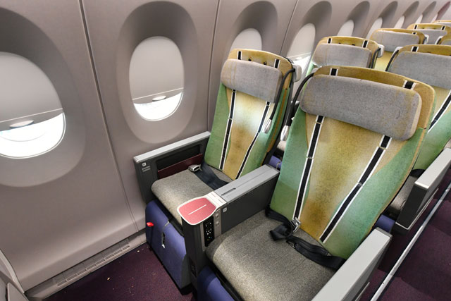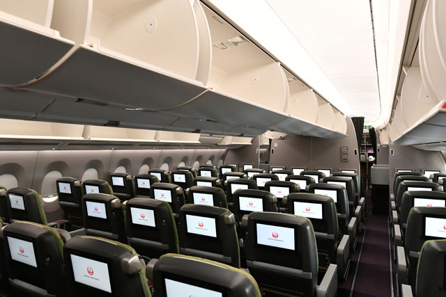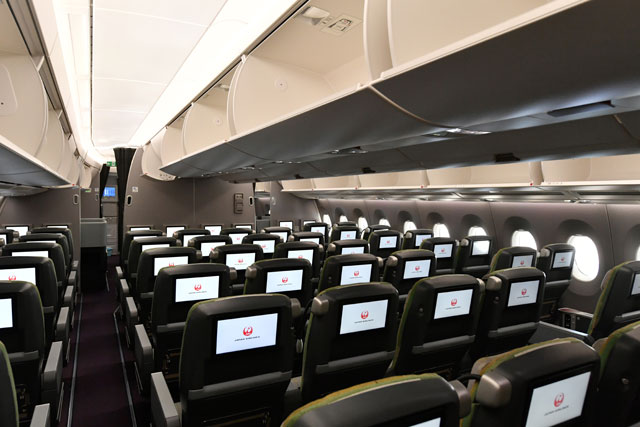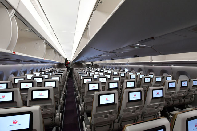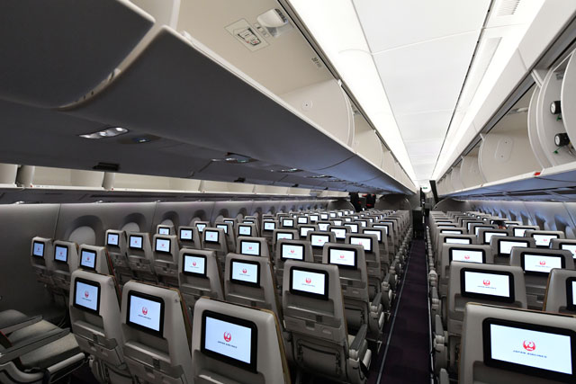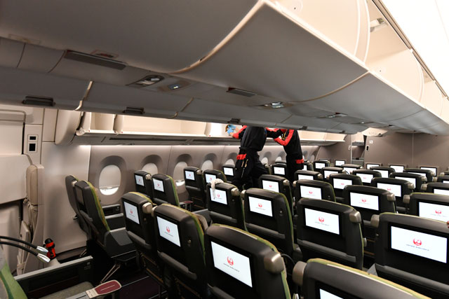 Cチェック中のJAL A350-900 JA05XJの普通席=21年11月26日 PHOTO: Tadayuki YOSHIKAWA/Aviation Wire