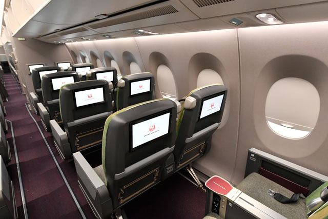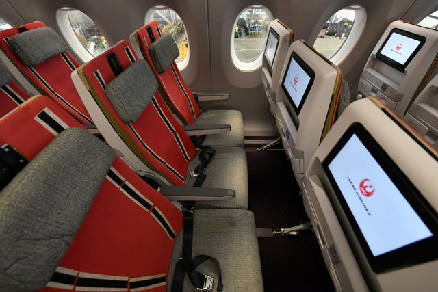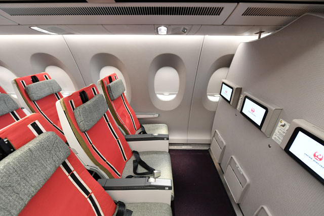 座席数は3クラス369席で、ファーストクラスが12席、クラスJが94席、普通席が263席が標準のX11仕様、14号機は普通席が多い3クラス391席(ファーストクラス12席、クラスJ 56席、普通席323席)のX12仕様で引き渡された。年末年始は初号機と3号機(JA03XJ)もX12仕様で運航している。