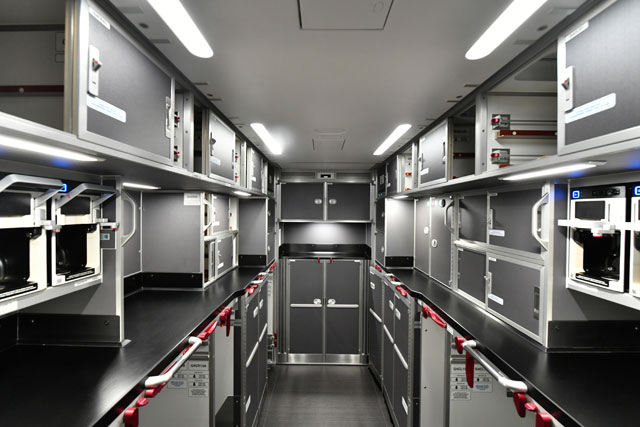 Cチェック中のJAL A350-900 JA05XJのギャレー=21年11月26日 PHOTO: Tadayuki YOSHIKAWA/Aviation Wire