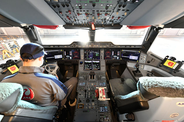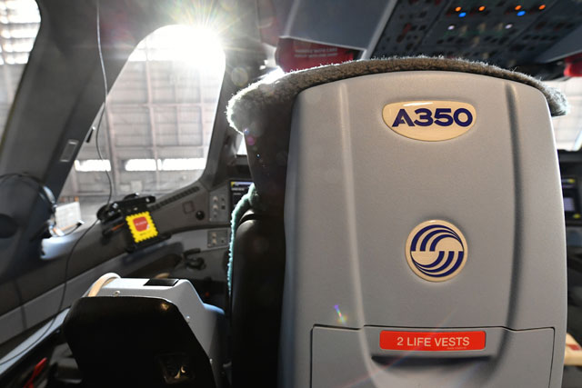 Cチェック中のJAL A350-900 JA05XJのコックピット=21年11月26日 PHOTO: Tadayuki YOSHIKAWA/Aviation Wire