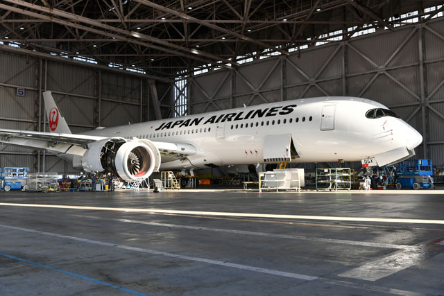 JALのA350-900は発注済みの18機がすべて国内線用機材で、12月時点で14号機(JA14XJ)まで受領。年度内に15号機まで日本に到着する見込み。国内線仕様のボーイング777-200型機(3クラス375席:ファースト14席、クラスJ 82席、普通席279席)を置き換えている。