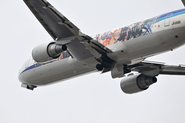 羽田からのフェリーフライトで成田空港に着陸するANAの特別デザイン機「鬼滅の刃じぇっと -壱-」=22年1月30日 PHOTO: Tadayuki YOSHIKAWA/Aviation Wire