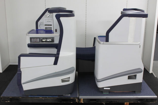ANAがヤフオクに出品するビジネスクラスシートのシートポジションタイプ(左)とベッドポジションタイプのモックアップ(同社提供)