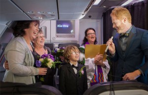 ニュージーランド航空機内で行われた同性婚の挙式(同社資料から)